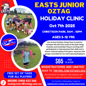 - If you have any problems with registration please contact us at eastsjuniors@oztag.com.au